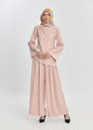 The Pearl Bloom Flare Set is a celebration of understated charm and flowy comfort. Designed with a relaxed silhouette, this tunic features a round neckline and subtle gathered shoulders that add a soft touch of femininity. The asymmetrical curved hemline offers graceful movement, perfectly paired with wide-leg pants that fall effortlessly from the waist.